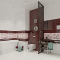 Коллекция «Фрея» - контрастная и яркая. Насыщенный бордовый цвет базовой плиты дополняется лёгким цветочным декором на светлом фоне. За счёт стыковки можно выложить как вертикальные зоны, так и горизонтальные.