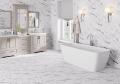 Коллекция «Сплит» имитирует текстуру белого мрамора с очень контрастными черными прожилками.